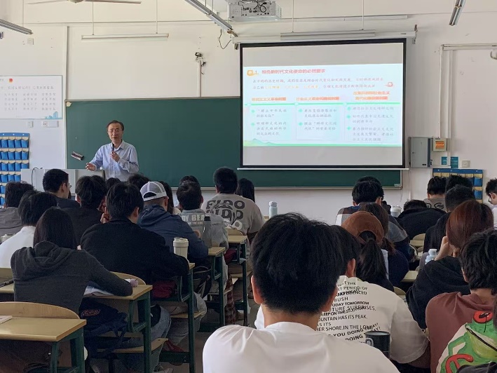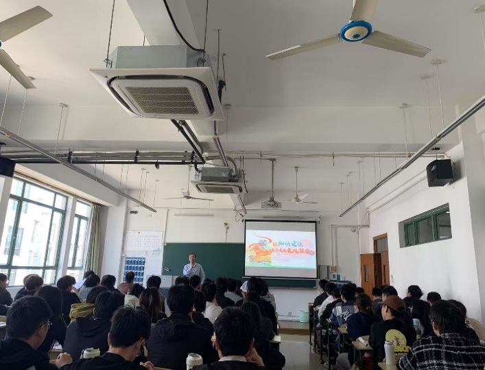 4月15日上午,校长万健在钱塘校区教C408教室为太阳成集团tyc9728道桥S24-1班和道桥S24-2班学生讲授了一堂主题为"文化自信"的形势与政策课。马克思主义学院教师焦志伟和太阳成集团tyc9728教师云高杰参加听课。