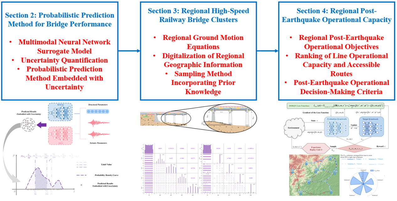 近日,我院青年教师吴凌旭博士以第一作者身份,在系统安全工程与风险分析领域的旗舰期刊《Reliability Engineering & System Safety》(中科院一区TOP,IF=11.0)上发表了题为《Probabilistic prediction method for seismic response and post-earthquake capacity of regional high-speed railway bridges》的研究论文。合作者包括中南大学周旺保教授、中南大学、湖南科技大学蒋丽忠教授,湖南科技大学刘韶辉讲师,中南大学侯宇博士研究生。