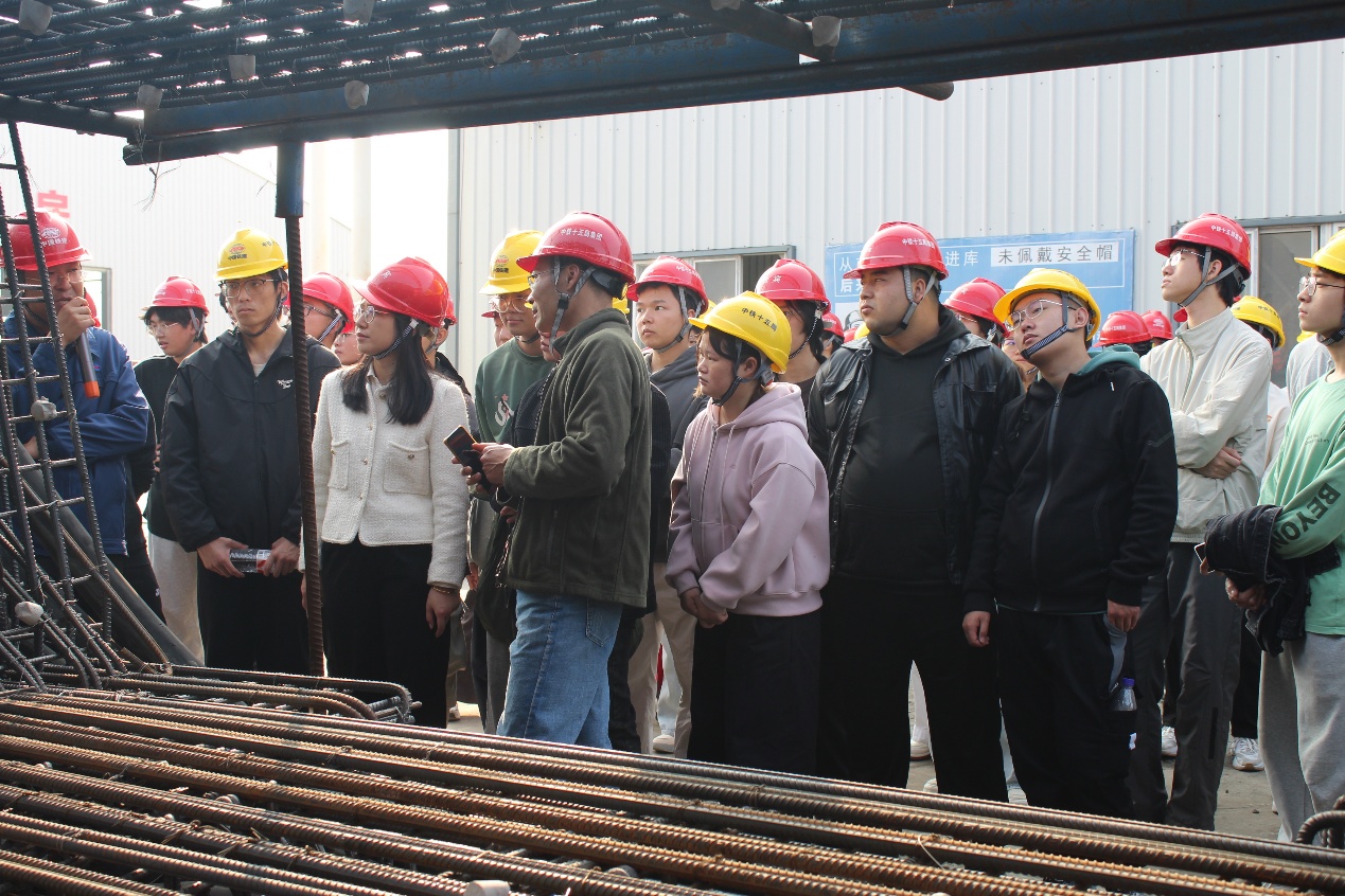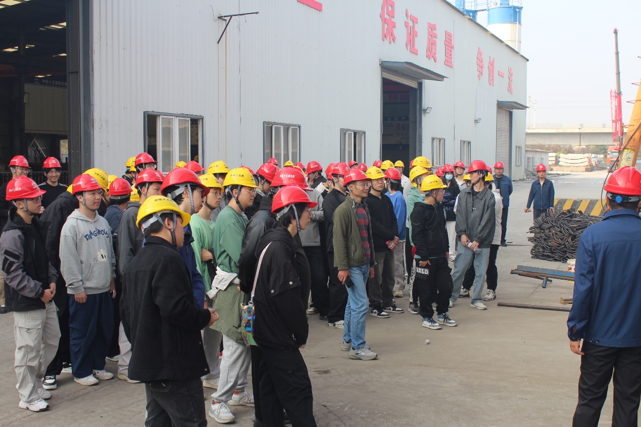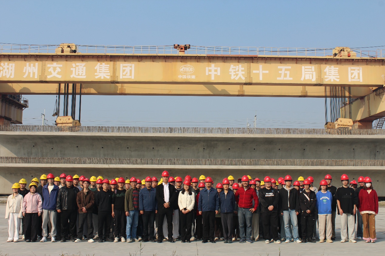 11月14日,太阳成集团tyc9728李蓓副院长带队,率李涛、卢国光、姚剑锋和史帆老师及道路桥梁与渡河工程专业23级学生一行,走访中铁十五局如通苏湖城际铁路项目施工现场。在工地现场,由如通苏湖项目总工程师樊梦舟讲解并带领学生从箱梁预制、养护、存放到最终架设,参观现代化铁路建设场地。通过实地参观、工程讲解和互动交流,让学生感受了国家重大基础设施建设的脉搏,并开展访企拓岗与党建交流活动,并就人才培养、科研合作等议题进行深入探讨。
