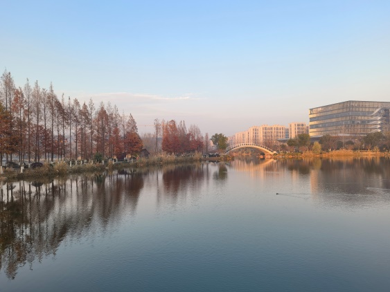 会后,在中邦环境俞杭泉总经理陪同下前往公司前期精心打造的丰收湖公园就项目提升进行现场交流。丰收湖公园地跨杭州余杭、上城两区,地处九乔国际商贸城中心商务区的核心区域,是九乔区域建设的核心工程之一;公园总占地面积约为13.7万平方米,其中水域净化面积约7万平方米,绿化面积约4.9万平方米,建筑物面积约为700平方米。公园融智慧科技、海塘遗址展示等于一体,将科技感与历史感兼收并蓄,落成后不仅极大地提升了区域景观绿化品质、改善了周边居民生活居住环境,还实现了与周边的现代化城市建筑的无缝衔接。