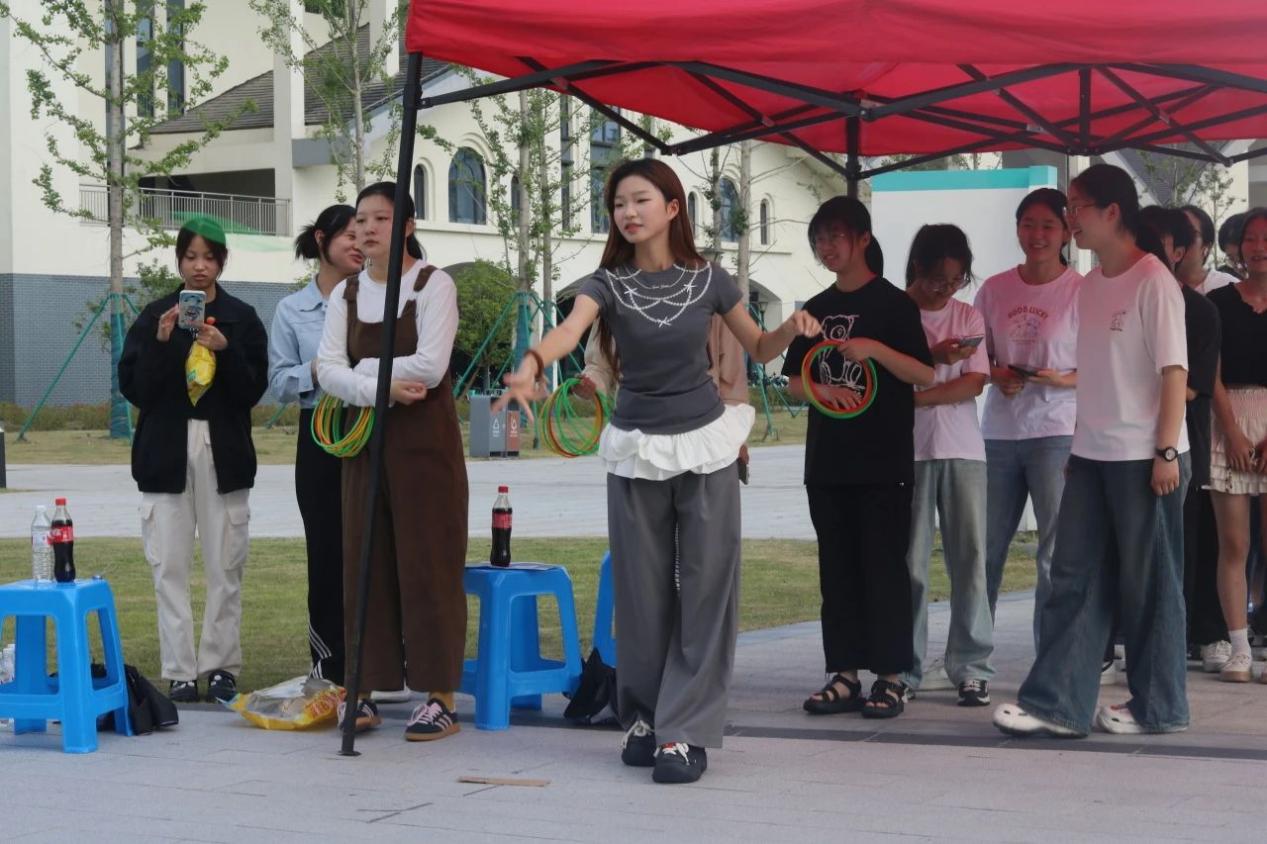 活动现场热闹非凡,精心布置的摊位吸引了众多同学的目光。摊位上的奖品琳琅满目,有憨态可掬的卡皮巴拉玩偶、便携小风扇和小动物捏捏乐等。同学们凭前期朋友圈的集赞兑换套圈进行游戏,同时志愿者们热情洋溢,他们不仅为参与者们提供指引,还设置了心理咨询摊位,为需要的同学提供专业的心理咨询服务。