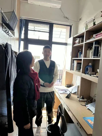 走访过程中,李书记与学生亲切交谈。李书记详细询问了他们假期的学习、生活以及未来规划等情况,并嘱咐同学们从假期状态转变为学习状态,以更加饱满的热情投入到大学的学习生活中去。同时,老师们也叮嘱同学们要严格遵守宿舍管理规定,注重安全用电,保持卫生环境,谨防春季流感,营造一个文明,安全,舒适的住宿环境。